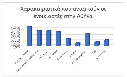 Στην πρώτη θέση των χαρακτηριστικών που καθορίζουν τις επιλογές των ενδιαφερόμενων ενοικιαστών στο σύνολο των περιοχών της Αττικής, βρίσκεται η καλή κατάσταση ενός ακινήτου, εάν δηλαδή είναι ανακαινισμένο και διαθέτει καινούργια κουφώματα (79% & 62% αντίστοιχα). Καθοριστικό ρόλο στην απόφαση για ενοικίαση παίζουν επίσης αν το ακίνητο διαθέτει θέση parking (65%) και αν βρίσκεται κοντά σε στάσεις Μέσων Μαζικής Μεταφοράς (50%).