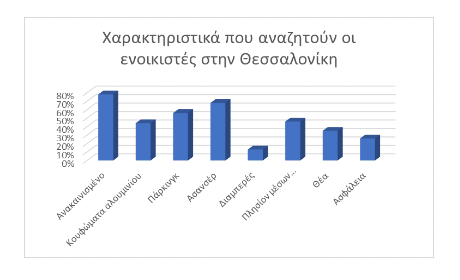 Όπως και στην περίπτωση της Αττικής, έτσι και στο πολεοδομικό συγκρότημα της Θεσσαλονίκης, χαρακτηριστικά που σχετίζονται με την κατάσταση του ακινήτου αλλά και διευκολύνσεις όσον αφορά τις μετακινήσεις παίζουν καθοριστικό ρόλο για την επιλογή και τη διαμόρφωση του ενοικίου. Οι εργασίες ανακαίνισης (78%), η ύπαρξη ασανσέρ (68%) και η θέση parking (57%) είναι τα τρία κυριότερα χαρακτηριστικά που αναζητούν οι ενδιαφερόμενοι ενοικιαστές σε ένα ακίνητο.