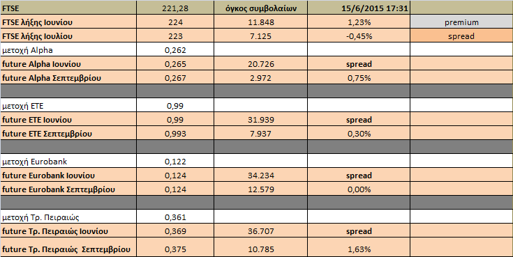 Κινητικότητα στα παράγωγα, με το roll over εντατικοποιείται ενόψει της λήξης της Παρασκευής σε όλα τα παράγωγα προϊόντα της σειράς Ιουνίου, ενώ διευρύνθηκε σημαντικά το premium στo future του 25αρη.