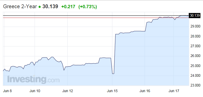 Απογοητευτική η εικόνα και στην αγορά ομολόγων, με την απόδοση στο 3ετές να διασπά το 30%, η απόδοση στο 5ετές διαμορφώθηκε στο 20% και στο 10ετές διαμορφώθηκε άνω του 13%.