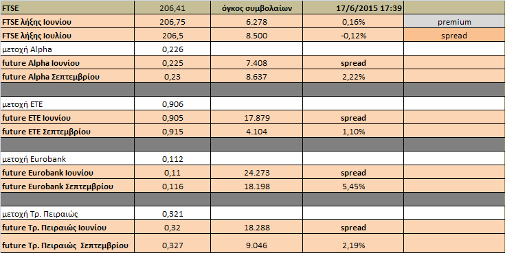 Λιγότερο έντονη ήταν η μετακύλιση θέσεων στην αγορά παραγώγων ενόψει της λήξης την Παρασκευή, ενώ τα time spreads στα μετοχικά συμβόλαια διευρύνθηκαν σημαντικά.