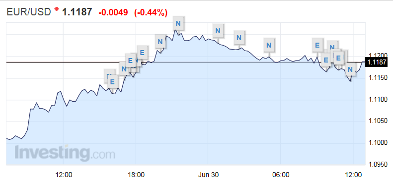 Χαμηλότερα κινείται το ευρώ έναντι του δολαρίου, χάνοντας το επίπεδο των 1,12 δολαρίων που ανέκτησε χτες, ωστόσο οι πιέσεις φαίνονται ελεγχόμενες. Το ελληνικό δράμα εξακολουθεί να ταλαιπωρεί το ευρωπαϊκό νόμισμα, ενώ η Αθήνα αναμένεται να μην είναι σε θέση να πληρώσει τη δόση που λήγει ως προς το ΔΝΤ ύψους 1,5 δισ. ευρώ.
