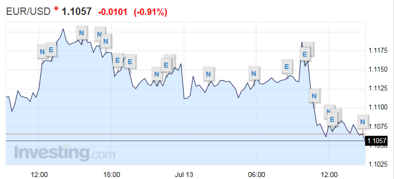 Το ευρώ ενώ κινήθηκε σε θετικό έδαφος μέχρι και τα 1,1152 δολάρια στην είδηση για συμφωνία στη Σύνοδο Κορυφής ενώ τώρα υποχωρεί κατά 0,91% στα 1,1057 δολάρια.