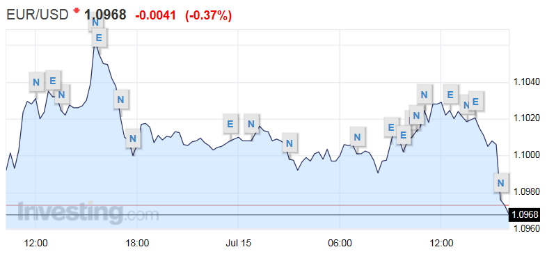 Στις ισοτιμίες, το ευρώ υποχωρεί 0,37% στα 1,0968 δολάρια, ενώ νωρίτερα έκανε τοπικό υψηλό στα 1,1036. Στα υπόλοιπα συναλλαγματικά ζεύγη, το δολάριο κερδίζει 0,34% έναντι του ιαπωνικού στα 123,79 γιεν, ενώ μεγαλύτερες πιέσεις δέχεται το δολάριο Νέας Ζηλανδίας έναντι του αμερικανικού, χάνοντας 0,62% στα 0,667.