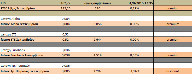 Χαμηλός ήταν ο όγκος σήμερα στην αγορά παραγώγων, με το μεγαλύτερο ενδιαφέρον να συγκεντρώνει το ΣΜΕ της Eurobank, η τιμή του οποίου έκλεισε με μεγάλο Premium έναντι της υποκείμενης αξίας.