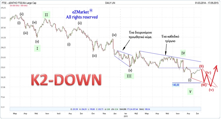 Σύμφωνα με την προσέγγιση των αναλυτών της eZMarket το καθοδικό σενάριο για τον δείκτη FTSE Large Cap θα μπορούσε να εξελιχθεί μεταξύ άλλων με την παρακάτω μορφή.