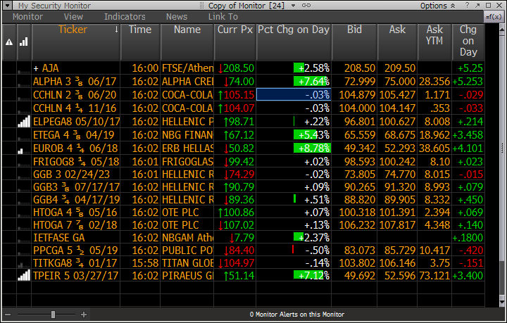 Το ομόλογο της τράπεζας Πειραιώς έφτασε έως και τα 51,14 λεπτά, της Alpha Bank ενισχύθηκε στα 74 λεπτά, της ΕΤΕ ενισχύθηκε στα 67,12 λεπτά και της Eurobank στα 50,82 λεπτά. Οι προσδοκίες στήριξης των αυξήσεων μετοχικού κεφαλαίου από ιδιώτες "πέρασαν" και στην αγορά μετοχών.