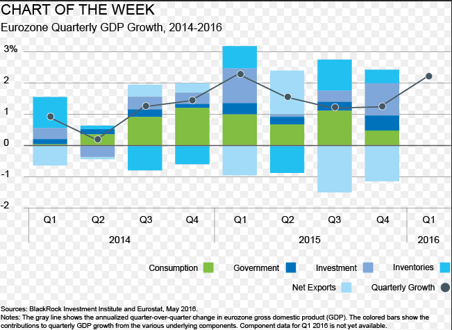 Η κατανάλωση θα συνεχίσει να στηρίζει το ΑΕΠ της ευρωζώνης στο βραχυπρόθεσμο διάστημα, σύμφωνα την νέα έκθεση του BlackRock Investment Institute για τις προοπτικές της Ευρώπης. Οι αγορές εργασίας βελτιώνονται σε χώρες όπως η Ιταλία, όπου οι μεταρρυθμίσεις φαίνεται να φέρνουν αποτελέσματα, ενώ πολλοί κορυφαίοι οικονομικοί δείκτες δείχνουν ισχυρότερη κατανάλωση. Επίσης, ένας σημαντικός "αντίθετος άνεμος" για την ανάπτυξη έχει αρχίσει να ξεθωριάζει καθώς η ευρωπαϊκή δημοσιονομική πολιτική στρέφεται μακριά από την λιτότητα και προς την ανάπτυξη. Επίσης, η Ευρωπαϊκή Κεντρική Τράπεζα είναι πιο πιθανό να επεκτείνει τις αγορές περιουσιακών στοιχείων, από ότι να μειώσει τα ήδη αρνητικά επιτόκια.