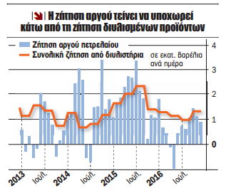 "Η ζήτηση αργού υποχώρησε για πρώτη φορά σε τρία χρόνια κάτω από τη ζήτηση για διυλισμένα προϊόντα", σημειώνει η επενδυτική τράπεζα, εξηγώντας πως τα διυλιστήρια είναι οι μεγαλύτεροι καταναλωτές αργού πετρελαίου. Εκτιμά, δε, ότι η ζήτηση για αργό θα συνεχίσει να υποχωρεί τους επόμενους μήνες. "Βλέπουμε ανησυχητικές εξελίξεις στην προσφορά, τη ζήτηση, τα διυλισμένα προϊόντα και το μακροοικονομικό περιβάλλον και όλα αυτά μπορεί να σκάσουν στο τέλος του καλοκαιριού", τονίζει ο Longson. Ως εκ τούτου, η Morgan Stanley δεν βλέπει rebalancing στην αγορά πριν από το β' εξάμηνο του 2017, ενώ προβλέπει μείωση της τιμής του πετρελαίου στα 40 δολάρια το βαρέλι έως το τέλος του έτους και περαιτέρω διολίσθησή του στα 35 δολάρια το πρώτο τρίμηνο του 2017.