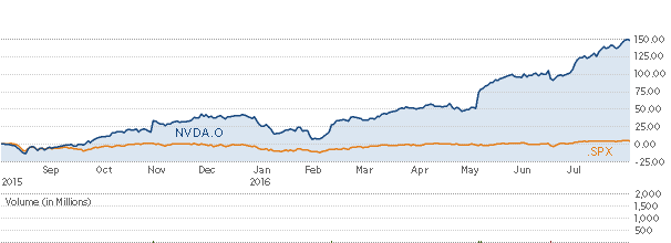 Η εταιρεία κατασκευαστής επεξεργαστών ηλεκτρονικών υπολογιστών για video games, αυτοκίνητα και κέντρα δεδομένων έχει δει τις μετοχές της να ενισχύονται κατά 146% το 2015. Η μόνη μετοχή στον S&P 500 που την ξεπέρασε ήταν αυτή της Newmont Mining, ωστόσο καμία μετοχή από τον κλάδο της τεχνολογίας δεν κατάφερε να ενισχυθεί περισσότερο από 50%.