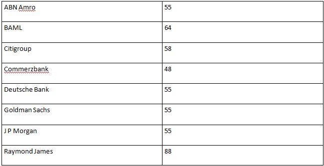 Σε ό,τι αφορά τις ακραίες προβλέψεις αναλυτών, η πιο "bearish" προέρχεται από τη γερμανική Commerzbank που βλέπει την τιμή του brent στα 48 δολάρια το βαρέλι στο τρίτο τρίμηνο του 2017, ενώ το υψηλότερο στοίχημα προέρχεται από την αμερικανική επενδυτική Raymond James στα 88 δολάρια το βαρέλι στο δεύτερο μισό της επόμενης χρονιάς.