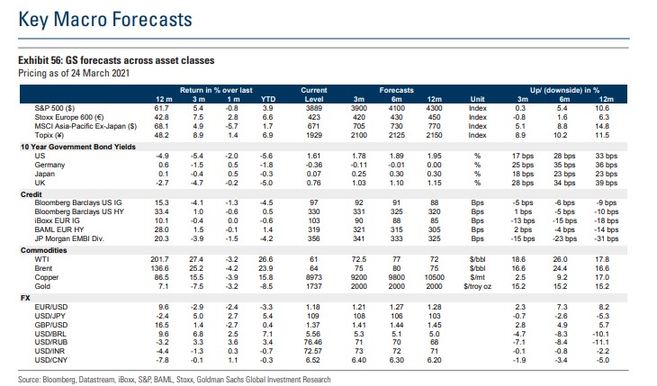 Η G.S αύξησε πρόσφατα τις προβλέψεις της για τις αποδόσεις των 10ετών κρατικών ομολόγων διεθνώς, προβλέποντας πως στο τέλος του έτους στις ΗΠΑ θα κινηθούν στο 1,9%, στη Γερμανία στο 0%, και στην Ιαπωνία στο 0,3%.
