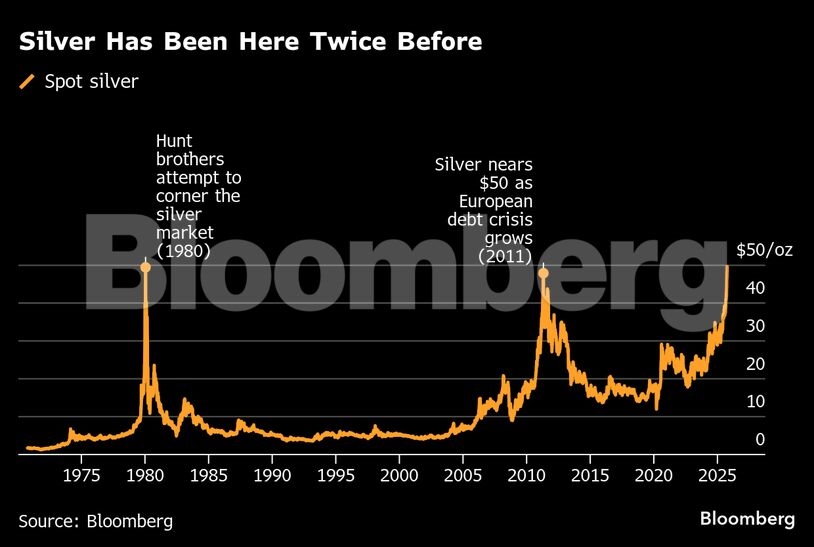 Το μέταλλο έχει ενισχυθεί από το λεγόμενο "debasement trade" (υποτίμηση), με τους επενδυτές να συρρέουν στη θεωρητική ασφάλεια του Bitcoin, του χρυσού και του ασημιού, ενώ απομακρύνονται από άλλα περιουσιακά στοιχεία. Οι ανησυχίες ότι η αξία των μετοχών θα διαβρωθεί από τον πληθωρισμό και τα μη βιώσιμα δημοσιονομικά ελλείμματα οδήγησαν τα εν λόγω περιουσιακά στοιχεία να σκαρφαλώσουν σε νέες κορυφές.