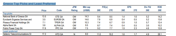 JP Morgan: Νέα ψήφος εμπιστοσύνης στην Ελλάδα – Overweight στις ελληνικές μετοχές, τράπεζες και utilities στις κορυφαίες επιλογές για το 2026