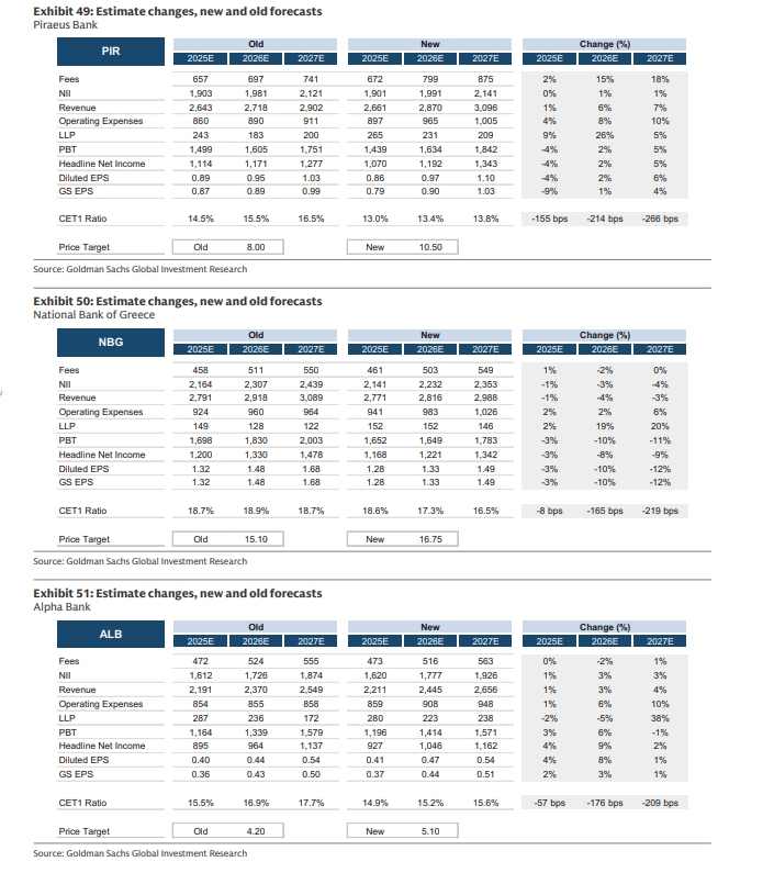 Η Goldman βλέπει ότι η απόδοση των ενσώματων ιδίων κεφαλαίων θα διαμορφωθεί κατά μέσο όρο περίπου στο 14-15% την περίοδο 2026-28, με τον δείκτη CET1 να διαμορφώνεται κατά μέσο όρο σε >15%.