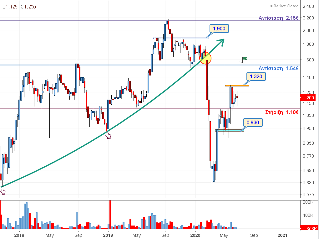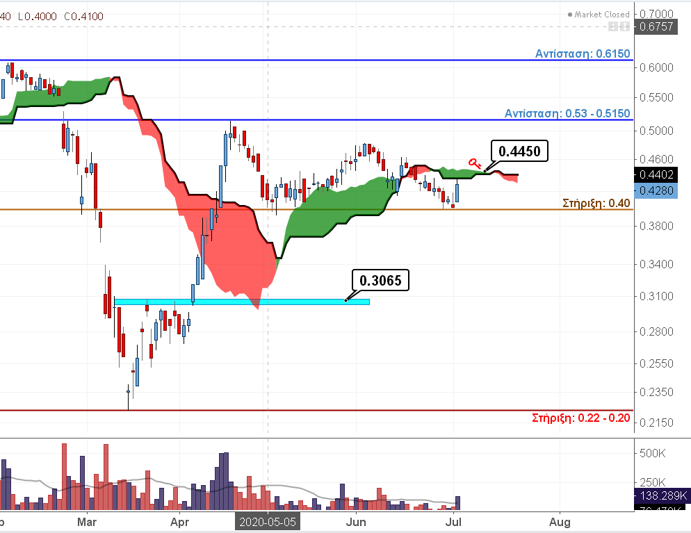 Ο Όμιλος ΑΒΑΞ στην ανακοίνωση των οικονομικών αποτελεσμάτων του 2019 εμφάνισε αύξηση 7% στον ενοποιημένο κύκλο εργασιών σε 575,9 εκατ. ευρώ έναντι 538,4 εκατ. ευρώ. του 2018 με τις λειτουργικές ταμειακές ροές, μη λαμβάνοντας υπόψη τις διακοπείσες δραστηριότητες, να παρουσίασαν επίσης σημαντική αύξηση σε σχέση με το προηγούμενο έτος. Να σημειωθεί επίσης ότι στο τέλος του 2019, το ανεκτέλεστο υπόλοιπο του Ομίλου ξεπερνούσε τα 1,3 δισεκ. ευρώ. Διαγραμματικά αυτό που προέχει στη μετοχή είναι να αρπάξει ανοδικά το κλειδί των 0,4450 ευρώ. Πάτημα πάνω από εκεί σε ημερήσιο κλείσιμο θα δώσει δυνάμεις στη μετοχή για κινηθεί προς το πρώτο επίπεδο αντίστασης των 0,48 ευρώ, έχοντας όμως κατά νου την πολύ σκληρή ζώνη των 0,53 με 0,5150 ευρώ. Έντονη αλλαγή σκηνικού μπορεί να προκληθεί μόνο με τη πτωτική καταστρατήγηση των 0,40 ευρώ με ισχυρό όγκο ρευστοποιήσεων.