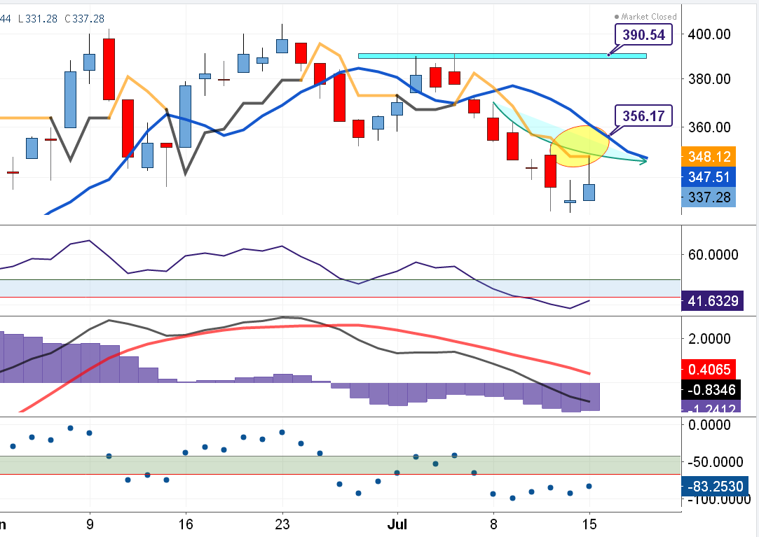 Προσπάθεια να δώσει το ανοδικό του παρόν κάνει και ο Τραπεζικός Δείκτης δίχως όμως τα εμφανή τεχνικά στοιχεία για κάτι τέτοιο. Στην εμπεριστατωμένη του ανάλυση θα πρέπει να πατήσει γερά πάνω από τους αντίστοιχους 3 διαγραμματικούς δείκτες και την περιοχή των 355 με 357 μονάδων για να πραγματοποιήσει την πιθανή βέλτιστη ανοδική κίνηση προς το προπύργιο των 390 μονάδων. Μέχρι τότε όμως θα πρέπει ο Τραπεζικός Δείκτης να στρίψει το ματσάκι και όχι τη… βίδα στους πτωτικούς τεχνικούς ταλαντωτές Relative Strength Index, Moving Average Convergence/Divergence και Williams %R.