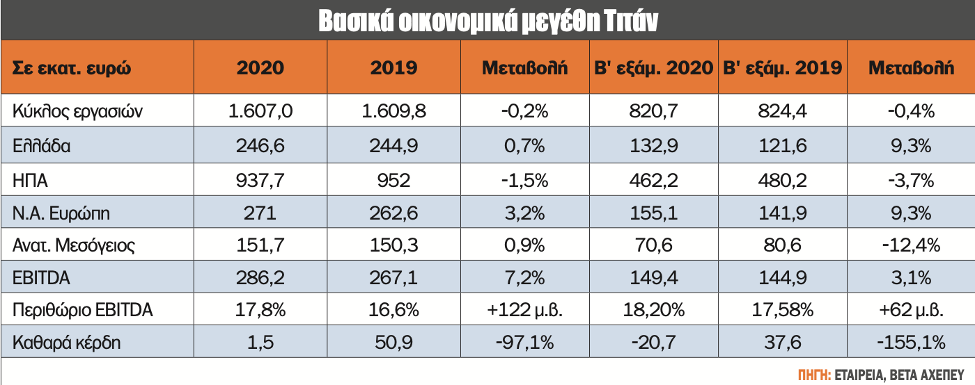 Τα οικονομικά αποτελέσματα της Τιτάν για το 2020 ήταν σε γενικές γραμμές αναμενόμενα με την καθαρή κερδοφορία να διαμορφώνεται στα 1,5 εκατ. ευρώ (50,9 εκατ. ευρώ το 2019), ως αποτέλεσμα λογιστικών μη ταμειακών χρεώσεων ύψους 63,9 εκατ. ευρώ που σχετίζονται με την Αίγυπτο. Χωρίς τις έκτακτες αυτές χρεώσεις, τα καθαρά κέρδη ανήλθαν σε 65,4 εκατ. ευρώ.