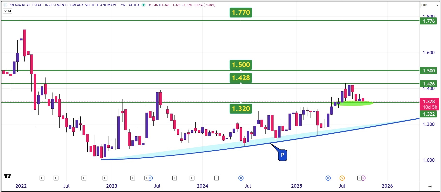 Από απόψεως τώρα διαγραμματικής ανάλυσης, όσο μένει η μετοχή πάνω από τη ζώνη των €1,30 με €1,29 τόσο θα θελήσει να ξαναπάρει την ανηφόρα για τα €1,50.