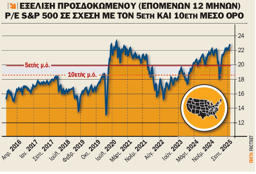 Ενώ η αγορά ανησυχεί για τον πληθωρισμό, οι αναλυτές όχι μόνο δεν μείωσαν τις εκτιμήσεις τους για τα κέρδη των εταιρειών του S&P 500, αλλά τις αύξησαν ελαφρώς για το γ’ τρίμηνο του 2025. Πιο συγκεκριμένα, η εκτίμηση των κερδών ανά μετοχή (ΚΑΜ) για το γ’ τρίμηνο ενισχύθηκε κατά 0,1% (στα 67,41 δολάρια από 67,32 δολάρια), την ώρα που σε ένα "τυπικό" τρίμηνο οι αναλυτές κόβουν τις προβλέψεις τους κατά 1,4% τα τελευταία 5 χρόνια και μέχρι και 4,3% τα τελευταία 20 έτη, σύμφωνα με τη factset.