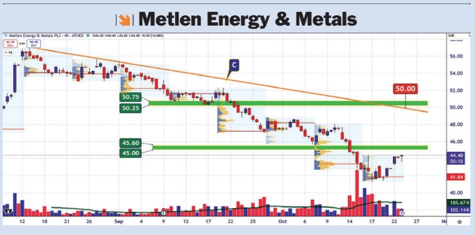 Η Metlen Energy & Metals επιβεβαιώνει τον διεθνή της προσανατολισμό με τη στρατηγική συμφωνία που υπέγραψε με την κορεατική HRE, για την πώληση χαρτοφυλακίου φωτοβολταϊκών 42 MW στη Νότια Κορέα. Η συμφωνία, που περιλαμβάνει πέντε έργα σε λειτουργία ή υπό ανάπτυξη και ετήσια παραγωγή άνω των 60 GWh, συνδέεται με μακροχρόνια PPAs με κορυφαίους κορεατικούς ομίλους. Επίσης η συνεργασία Metlen - HRE ανοίγει τον δρόμο για μελλοντικά έργα ΑΠΕ μεγάλης κλίμακας, συστήματα αποθήκευσης ενέργειας (BESS) και "πράσινα" data centers, τοποθετώντας τη Metlen ως έναν από τους ελάχιστους ευρωπαϊκούς ομίλους με ενεργή παρουσία στην αγορά της Ανατολικής Ασίας. Παράλληλα, η 10ετής συμφωνία PPA με την ENGIE για 235 MW στο Ηνωμένο Βασίλειο επιβεβαιώνει την ηγετική θέση του τομέα M Renewables, ο οποίος εξελίσσεται σε βασικό πυλώνα κερδοφορίας. Με τη Citi να διατηρεί σύσταση "Buy" και τιμή-στόχο 52 ευρώ (με ανοδικό σενάριο στα 80 ευρώ) και την Axia να προβλέπει EBITDA 1,25 δισ. ευρώ για το 2025, η Metlen χτίζει μεθοδικά ένα διεθνές ενεργειακό και μεταλλουργικό χαρτοφυλάκιο που τη μεταμορφώνει σε στρατηγικό ευρωπαϊκό παίκτη της ενεργειακής μετάβασης. Εδώ διαγραμματικά το σημείο-κλειδί ανοδικής εκτίναξης είναι η τμήση της ζώνης αντίστασης στα 45 με 45,60 ευρώ.