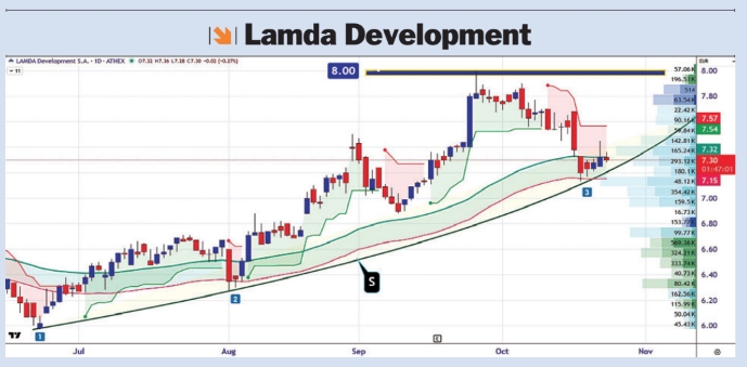 Τέλος για τη Lamda Development η Eurobank Equities επαναβεβαιώνει τη σύσταση "Buy" ανεβάζοντας την τιμή-στόχο στα 10,70 ευρώ από 9,50 ευρώ, γεγονός που συνεπάγεται περιθώριο ανόδου 41,5% (!) από τα τρέχοντα επίπεδα. Η ανάλυση χαρακτηρίζει το Ellinikon ως "πλήρως αυτοχρηματοδοτούμενο έργο", με ρευστότητα 1,3 δισ. ευρώ έναντι 744 εκατ. ευρώ δαπανών έως το α’ εξάμηνο του 2025, υπογραμμίζοντας την ικανότητα της Lamda να προχωρά χωρίς εξωτερικές αυξήσεις κεφαλαίου. Παρά τις καθυστερήσεις σε επιμέρους έργα λόγω ελλείψεων εργατικού δυναμικού και των νέων πολεοδομικών κανονισμών, η Eurobank εκτιμά αύξηση του προσαρμοσμένου EBITDA στα 185 εκατ. ευρώ το 2025 (+8%), ενώ το καθαρό κέρδος θα φτάσει τα 202 εκατ. ευρώ, με το Ellinikon να συνεισφέρει περίπου το 25%. Η έκθεση προβλέπει ονομαστική αξία δημιουργίας 2 δισ. ευρώ από το Ellinikon, με τα περιθώρια κέρδους στα οικιστικά έργα να κυμαίνονται από 34% έως 37%, ενώ η καθαρή αξία ενεργητικού (NAV) αναμένεται να ξεπεράσει τα 11,5 ευρώ ανά μετοχή έως το 2027. Η Lamda συνεχίζει να διαπραγματεύεται κάτω από τα 8 ευρώ παρά τη σημαντική πρόοδο στα έργα "Little Athens", "Riviera Tower" και "Riviera Galleria". Με εύλογο δείκτη μόχλευσης (Net Debt/EBITDA 2,4x) και επιτόκιο δανεισμού κοντά στο 4%, η Eurobank θεωρεί ότι το ρίσκο εκτέλεσης αντισταθμίζεται από τη μακροπρόθεσμη υπεραξία που ενσωματώνει το μεγαλύτερο αναπτυξιακό έργο της χώρας. Διαγραμματικά η μετοχή ακουμπάει για άλλη μία φορά τον ανοδικό στροφέα στα 7,20 με 7,30 ευρώ. Τις προηγούμενες ακολούθησε ανοδική εκτίναξη.