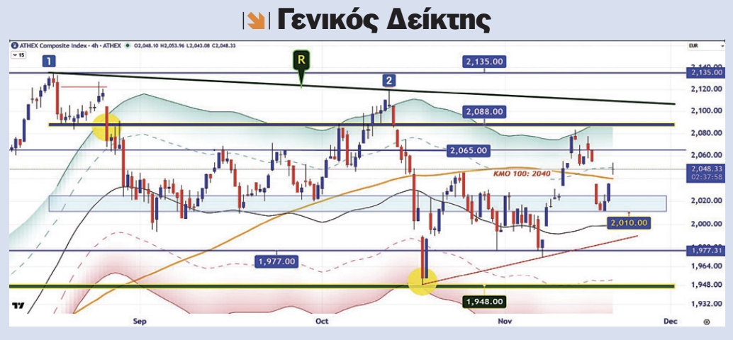 Την ώρα τώρα που το θεσμικό πλαίσιο της αγοράς αλλάζει επίπεδο, οι δείκτες δείχνουν μια χαρακτηριστική εικόνα συσσώρευσης πριν από το άνοιγμα του επόμενου μακροπρόθεσμου κύκλου. Ο Γενικός Δείκτης παραμένει σταθερά πάνω από τη ζώνη 1.977-2.010, με τη διάσπαση των 2.080 μονάδων να λειτουργεί ως προπομπός της επόμενης ανοδικής κίνησης προς τις 2.150 με 2.200, όπου συγκλίνουν και οι μακροπρόθεσμες αντιστάσεις.