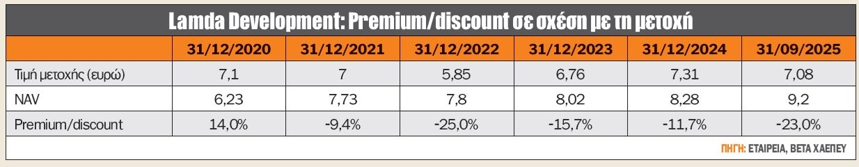 Το καθαρό αποτέλεσμα του ομίλου διαμορφώθηκε σε κέρδη 116,2 εκατ. ευρώ, έναντι ζημιών 14,1 εκατ. ευρώ το 9μηνο του 2024, εξέλιξη που αντανακλά τόσο τη βελτίωση της λειτουργικής κερδοφορίας όσο και τα σημαντικά κέρδη διαφοράς αποτιμήσεων ύψους 151 εκατ. ευρώ. Παράλληλα, η καθαρή αξία ενεργητικού (NAV) αυξήθηκε στα 1,57 δισ. ευρώ, ή 9,20 ευρώ/μετοχή, από 8,28 ευρώ/μετοχή στο τέλος του 2024. Αξίζει να σημειωθεί ότι η έκπτωση με την οποία διαπραγματεύεται η μετοχή της Lamda Development διπλασιάστηκε σε σχέση με το τέλος του 2024, καθώς αγγίζει το 23%, έναντι 12% στις 31/12/2024!