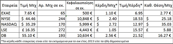 Το LSE και το DB όπως και η ΕΧΑΕ χρεώνουν προμήθειες επί των συναλλαγών και κατά συνέπεια τα έσοδα τους ακολουθούν την πορεία των αγορών τους. Και εδώ οι ισολογισμοί των εταιρειών είναι καθόλα υγιείς με χαμηλά επίπεδα χρέους.