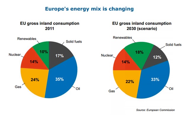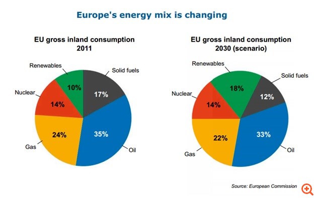 Όπως παρατηρούμε από το παρακάτω σχεδιάγραμμα το φυσικό αέριο θα παίξει σημαντικό ρόλο στο ευρωπαϊκό μελλοντικό ενεργειακό μίγμα, για αυτό είναι σημαντικό να χρηματοδοτηθούν έργα ενεργειακών υποδομών όπως τα παρακάτω: