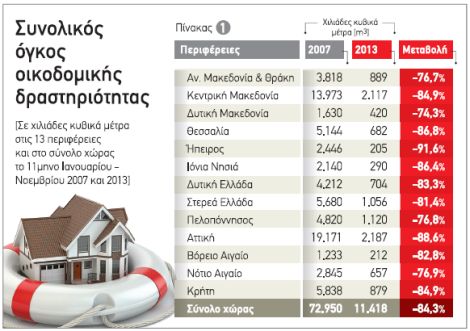 Σύμφωνα με τα επίσημα στοιχεία της ΕΛΣΤΑΤ, από την αρχή της οικονομικής κρίσης, τα 150 και άνω επαγγέλματα γύρω από τον χώρο της οικοδομής, ατμομηχανής στο τραίνο της ανάπτυξης στην προμνημονιακή εποχή, γνώρισαν μειώσεις στα εισοδήματά τους ανάλογες με την πτώση του κλάδου, πτώση που κυμάνθηκε από 70 έως και 80+% σωρευτικά.