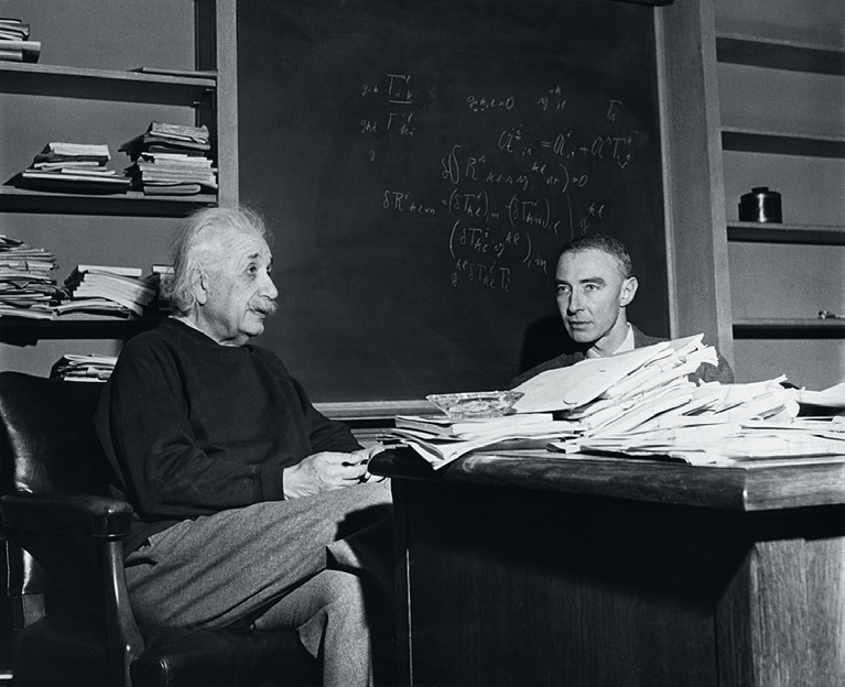 Ο Άλµπερτ Αϊνστάιν και ο Τζ. Ρόµπερτ Οπενχάιµερ, γνωστός ως ο πατέρας της ατοµικής βόµβας, στο γραφείο του Αϊνστάιν το 1950.