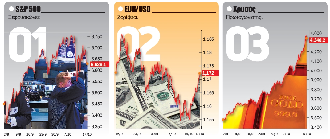 Ενόσω αναμένονται οι εξελίξεις, και με πιθανότερο σενάριο η Fed να "σβήνει τη φωτιά" και να κόβει τα επιτόκια, τα κυβερνητικά ομόλογα σημειώνουν άνοδο, με την απόδοση της αμερικανικής διετίας να υποχωρεί σε πολυετές χαμηλό και το 10ετές Treasury να σκαρφαλώνει σε επίπεδα που είχε να δει από τις μέρες του δασμολογικού σοκ του Απριλίου. Εμφανής η τάση των επενδυτών να στραφούν προς "ασφαλή καταφύγια", με τον χρυσό να σπάει ιστορικά ρεκόρ για πλάκα και τον "δείκτη φόβου" VIX να ξυπνάει από τον λήθαργο, υποδηλώνοντας ότι πίσω από τα μετοχικά υψηλά κρύβεται επενδυτική ανησυχία. Βουτιά στα crypto.