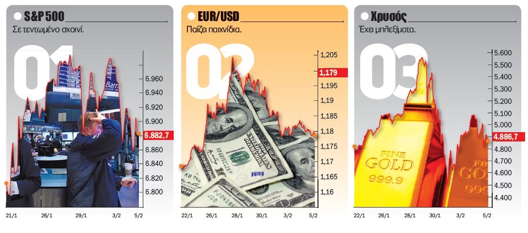 Το κύμα αποστροφής προς το ρίσκο επεκτείνεται και προς τις μετοχές του αμερικανικού τεχνολογικού κλάδου, με κάποιες από αυτές να "τιμωρούνται" ακόμη και μετά τη δημοσίευση δυνατών αποτελεσμάτων χρήσης. Εμφανής η ανατροπή του sentiment για εταιρείες big tech και hyperscalers που δραστηριοποιούνται σε ημιαγωγούς, ΑΙ και λογισμικό, με το rotation των επενδυτικών κεφαλαίων μακριά από γνωστά, "αγαπημένα χαρτιά" να απεικονίζει την προσπάθεια εύρεσης των επόμενων "νικητών". Ο δείκτης S&P 500 πάντως συνεχίζει την προσπάθεια κατάκτησης των 7.000 μονάδων, καθώς η στρατηγική "buy the dip" παραμένει ζωντανή ειδικά στις τάξεις των μικροεπενδυτών που... ελπίζουν.