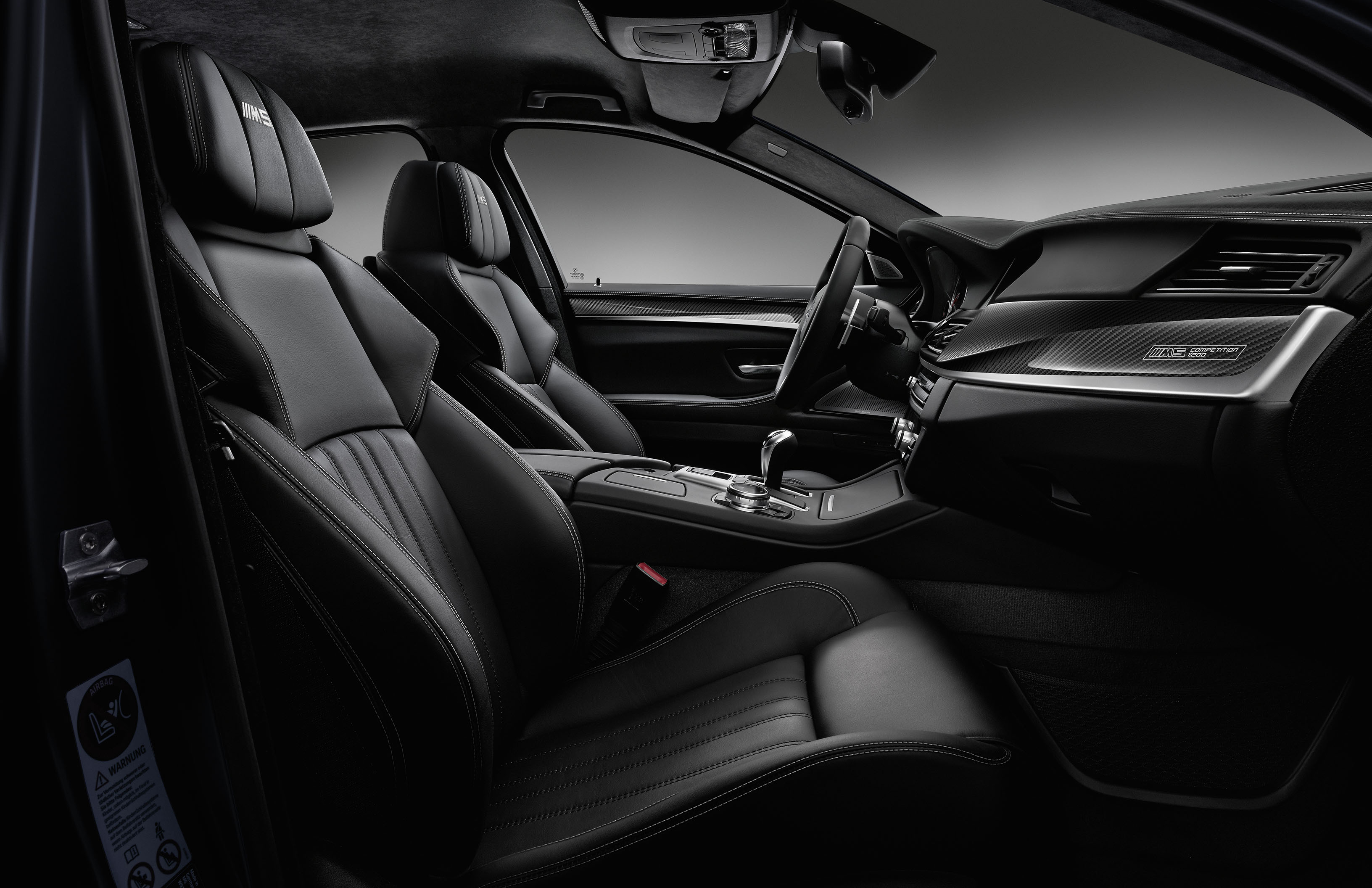 Περιβάλλον υψηλής ποιότητας με σπορ στοιχεία στο εσωτερικό. Το εσωτερικό υπογραμμίζει επίσης τη μοναδικότητα της BMW M5 "Competition Edition”. Για παράδειγμα, διακοσμητικές λωρίδες εσωτερικού από ανθρακονήματα με το λογότυπο "M5 Competition 1/200” προδίδουν τα χαρακτηριστικά υψηλών επιδόσεων του μοντέλου και το γεγονός ότι η BMW M5 "Competition Edition” είναι μία από τις 200 που έχουν κατασκευαστεί. Στο προηγμένο περιβάλλον της καμπίνας κυριαρχούν η πλήρως δερμάτινη επένδυση Merino Black με αντίθετη ραφή σε Opal White και τα πατάκια σε Anthracite με δερμάτινη μπορντούρα σε Merino Opal White. Στο εσωτερικό της BMW M5 "Competition Edition”, τόσο ο οδηγός όσο και ο συνοδηγός κάθονται σε πολυλειτουργικά καθίσματα Μ, με μία ολοκληρωμένη γκάμα ηλεκτρικών ρυθμίσεων που εξισορροπούν τέλεια την άνεση και τη σπορ πλευρική στήριξη. Και εδώ, το λευκό λογότυπο "///M5” που είναι κεντημένο στα προσκέφαλα τονίζει το αποκλειστικό χαρακτήρα του αυτοκινήτου.