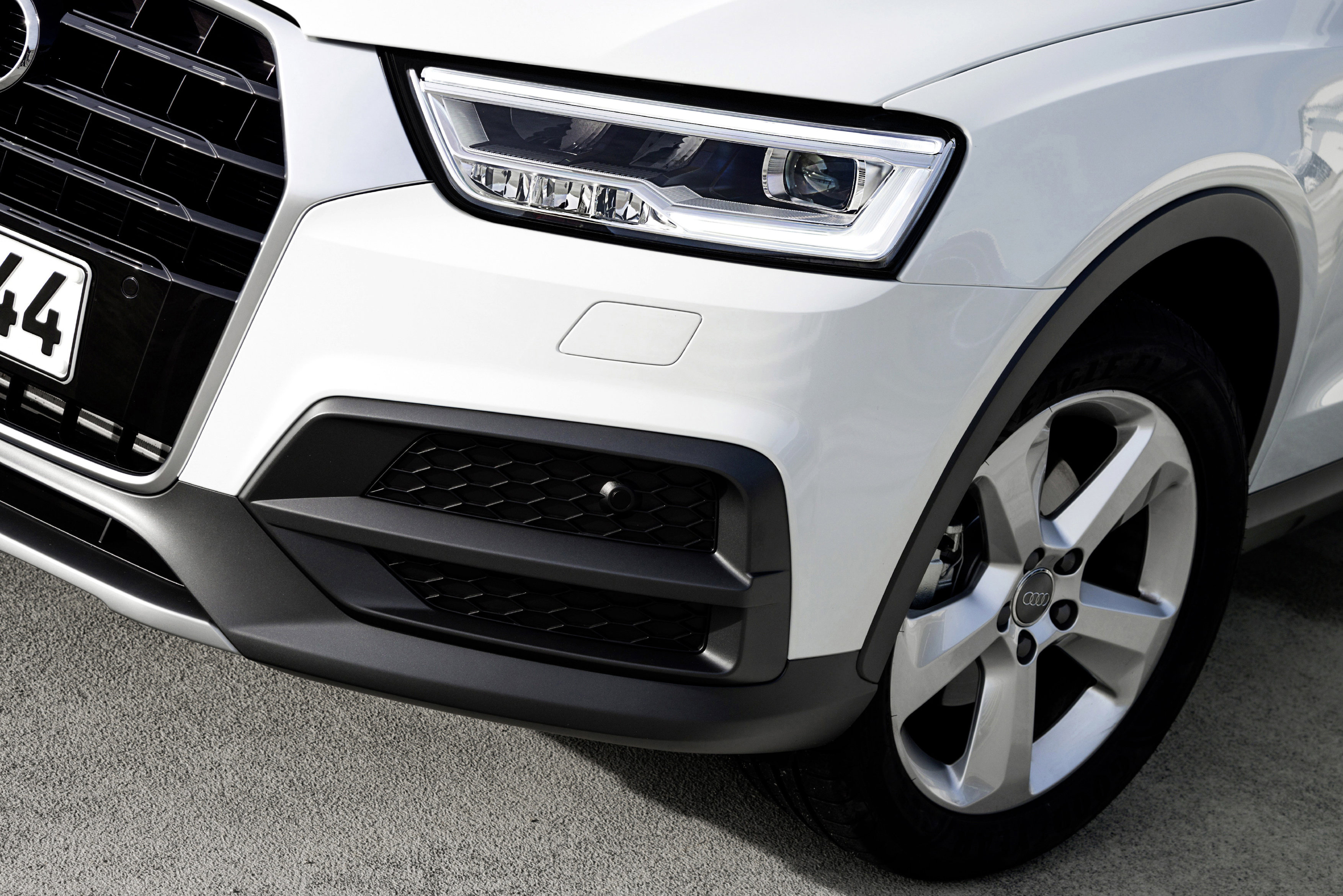 Σχετικά με το εξωτερικό του Q3, όπως είπαμε και στην αρχή, από το 2014 ανανεώθηκε ελαφρώς. Οι προφυλακτήρες ανασχεδιάστηκαν, η μάσκα απέκτησε πιο έντονο περίγραμμα και τα φώτα στον βασικό εξοπλισμό εφοδιάστηκαν με τεχνολογία Xenon Plus για τα εμπρός και LED για τα πίσω.