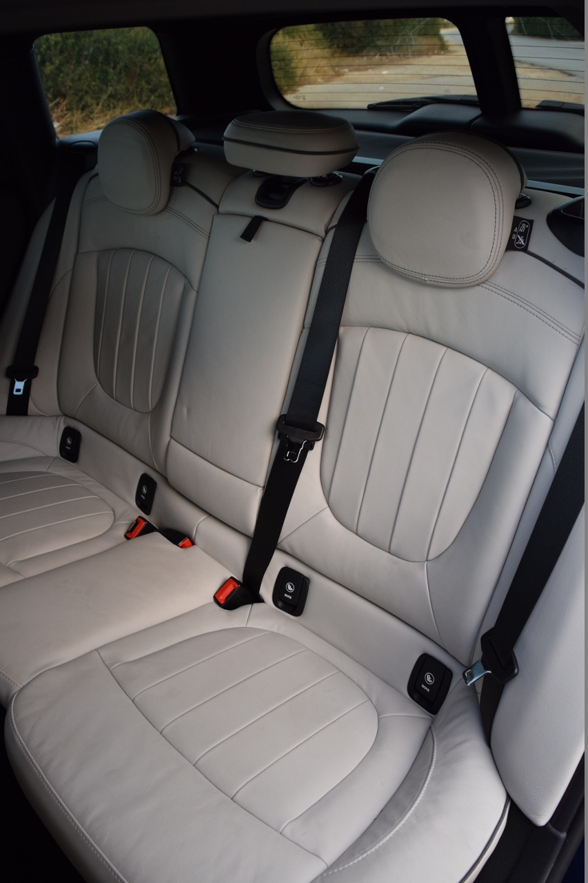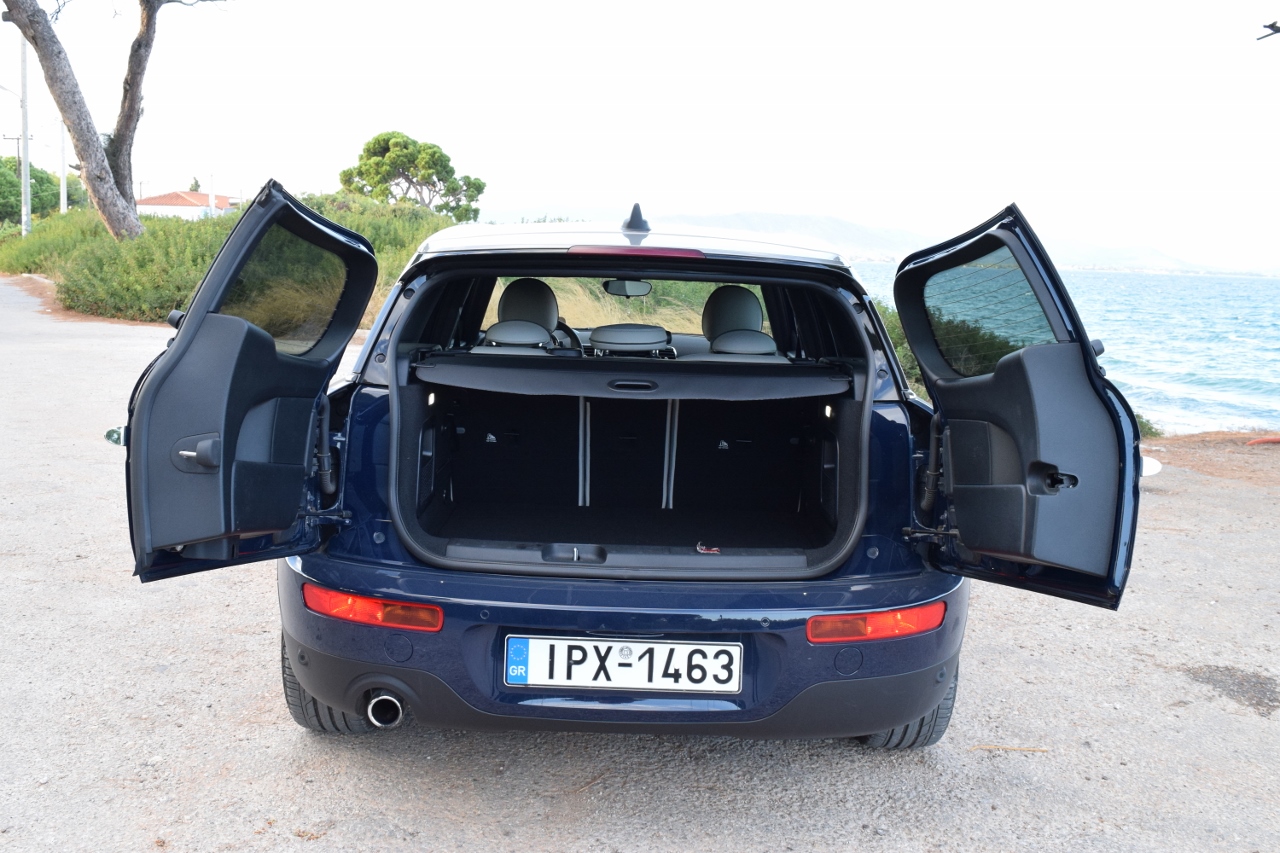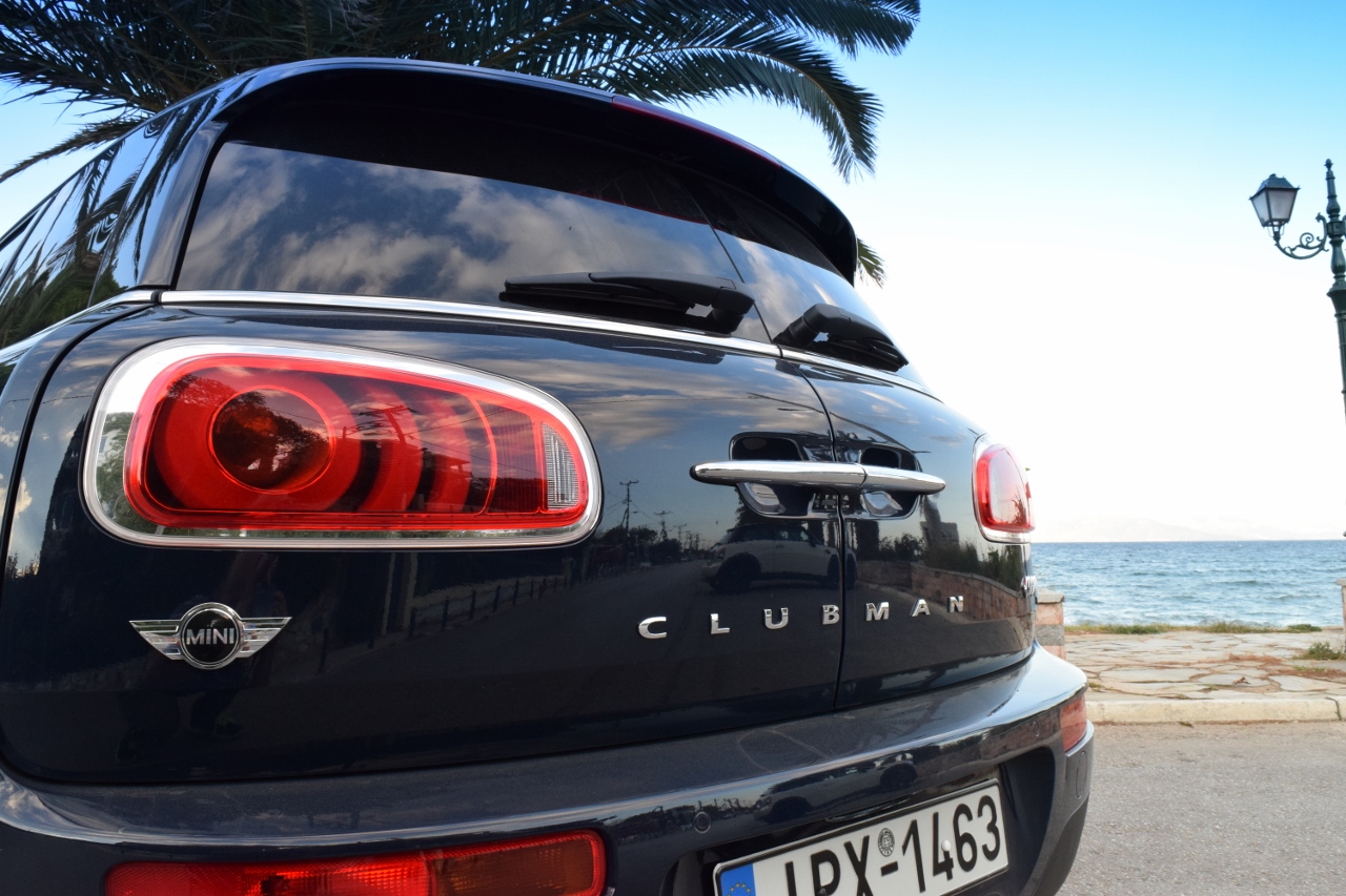 Από εκεί και πέρα στην πλαϊνή όψη θυμίζει περισσότερο station, με το τρίτο πίσω τζάμι. Ωστόσο έχει τύπο και δεν σε κάνει να νοιώθεις υποχρεωτικά οικογενειάρχης, όπως ισχύει σε ένα μεγάλο μέρος των station. Η μεγάλη όμως διαφορά βρίσκεται στο πίσω μέρος. Για πρώτη φορά ένα ΜΙΝΙ εγκαταλείπει τα κάθετα φανάρια και τα αντικαθιστά με οριζόντια. Το αποτέλεσμα μπορεί να μην είναι τόσο χαρακτηριστικό ΜΙΝΙ αλλά μας αρέσει. Αφενός γιατί το κάνει να ξεχωρίζει από τα υπόλοιπα αφετέρου γιατί αντικειμενικά είναι όμορφο! Η αισθητική ιδιαιτερότητα ολοκληρώνεται με τις δυο πίσω πόρτες. Παιχνιδιάρικες με τους δυο καθαριστήρες και το εντυπωσιακό άνοιγμα τους όταν πατάς το κουμπί στο κλειδί, πρακτικά απαιτούν περισσότερες κινήσεις αλλά και μικρότερο χώρο για να ανοίξουν. Από πίσω τους κρύβεται ένας χώρος αποσκευών με 360 lt. χωρητικότητα, νούμερο άκρως ικανοποιητικό αλλά ίσως όχι επαρκές για οικογένεια με παιδιά