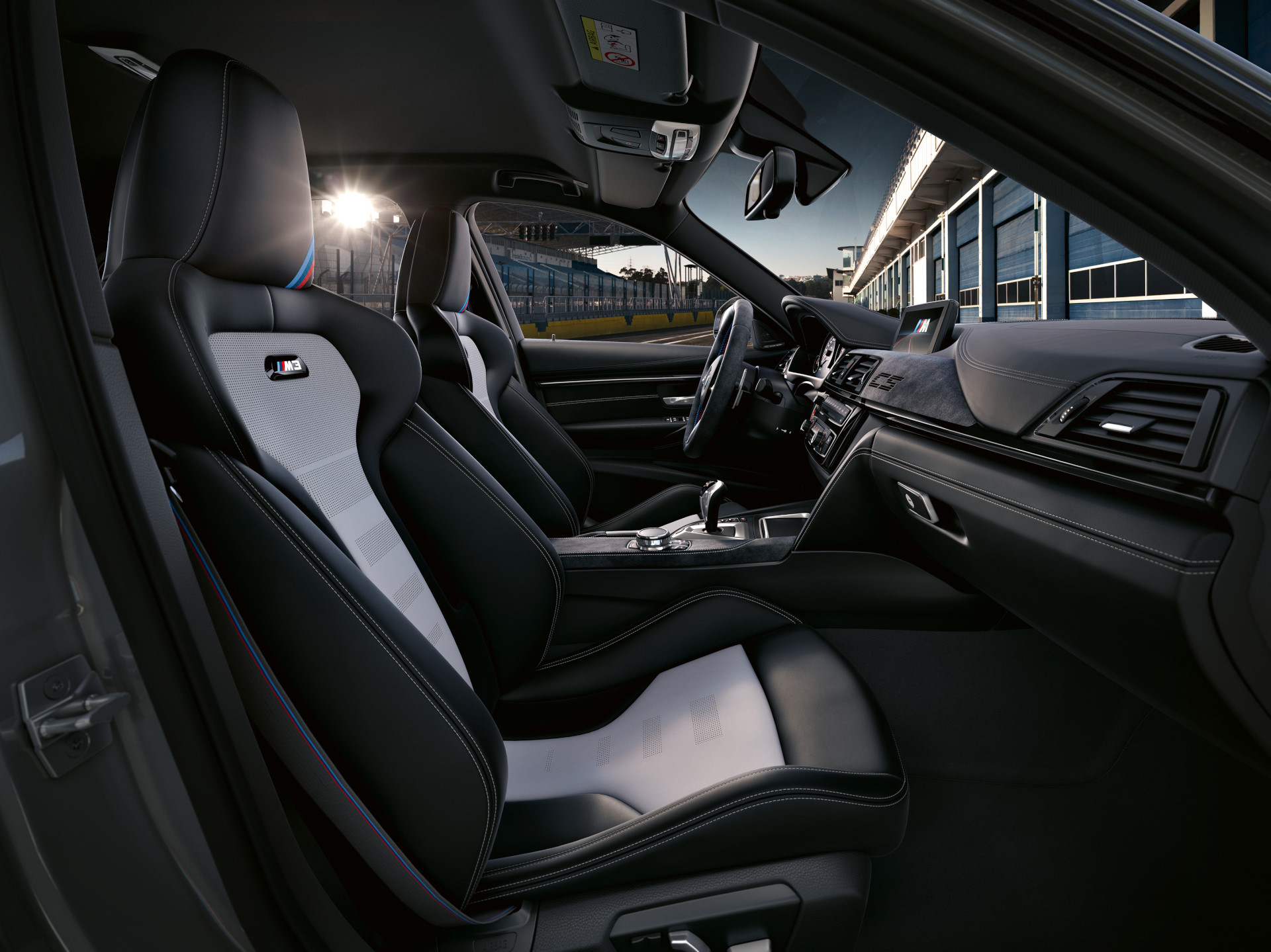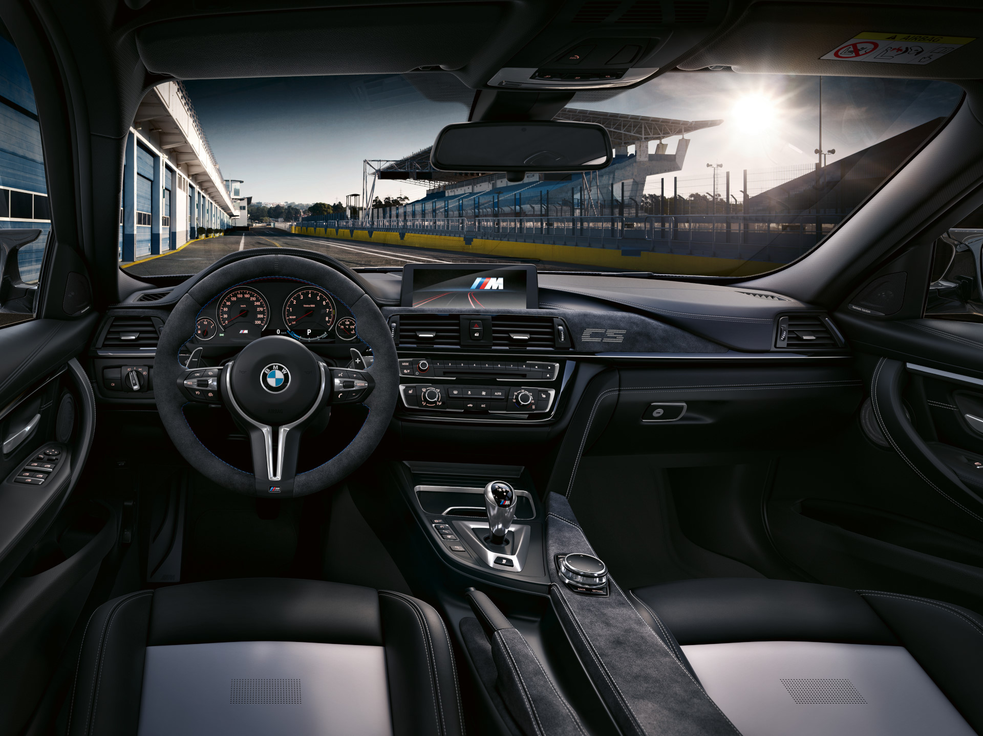 BMWΣτο εσωτερικό της νέας BMW M3 CS, η δίχρωμη, δερμάτινη επένδυση των καθισμάτων σε Silverstone/Black και Alcantara δημιουργεί ένα ακαταμάχητο περιβάλλον που ξεχειλίζει από σπορ γοητεία και αναμφισβήτητη ποιότητα. Κανείς οδηγός μιας M3 CS δεν χρειάζεται να στερηθεί απολαύσεις της ζωής, όπως ο αυτόματος έλεγχος κλιματισμού, το σύστημα ήχου Harman Kardon surround και το Σύστημα Πλοήγησης Professional, που προσφέρονται στάνταρ. Στο εξωτερικό, οι σχεδιαστές της BMW M GmbH χάρισαν στη νέα M3 CS μία εμφάνιση που υποδηλώνει τις σπορ προθέσεις της. Το στοιχείο ταυτότητας του εμπρός τμήματος μαζί με τους προηγμένους, προηγμένους δίδυμους προβολείς LED είναι η εμπρός ποδιά με μεγάλους αεραγωγούς τριών τμημάτων. Η διακριτική αεροτομή Gurney πίσω έχει σχεδιαστεί ειδικά για τη νέα M3 CS, και συνεργάζεται με το εμπρός splitter και τον πίσω διαχύτη για ελαχιστοποίηση της δυναμικής άνωσης. Τα εξαρτήματα αυτά κατασκευάζονται από ελαφρύ και εξαιρετικά άκαμπτο high-tech πλαστικό ενισχυμένο με ανθρακονήματα (CFRP), όπως το καπό και η οροφή της νέας BMW M3 CS.