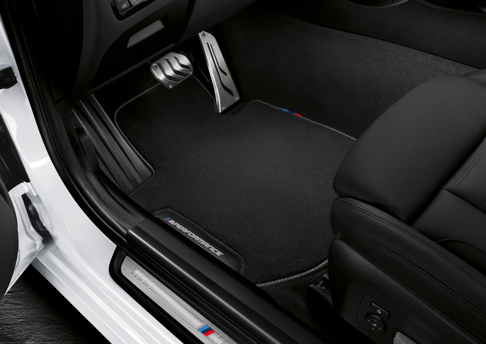 Στην περιοχή των ποδιών της νέας BMW Σειράς 3 Sedan, τα πατάκια M Performance τονίζουν το σπορ χαρακτήρα, με το λογότυπο M Performance και μία σημαία σε χρώματα M, μαζί με ένα πλαίσιο δερμάτινης φιλοσοφίας και διακοσμητική ραφή σε αντίθετες αποχρώσεις.