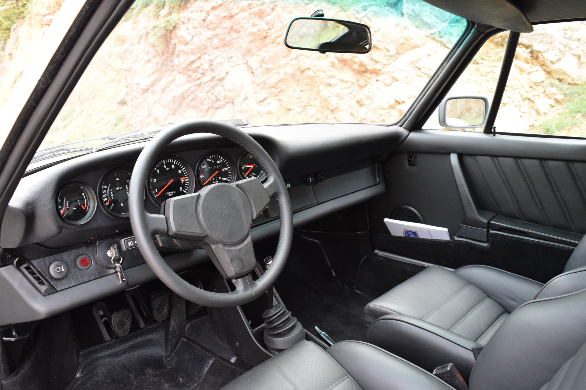 Οι διαστάσεις της είναι πολύ μαζεμένες, τουλάχιστον με βάση τα σημερινά δεδομένα. Ανοίγεις την μικρή σε διαστάσεις πόρτα και βυθίζεσαι στο εσωτερικό. Κάθεσαι χαμηλά αλλά κατά τα άλλα έχεις καλή εποπτεία του δρόμου και νιώθεις ιδιαίτερα φιλικά, κάτι που θυμίζει περισσότερο ένα καθημερινό μοντέλο. Αυτό βέβαια είναι και ένα χαρακτηριστικό των 911. Φιλικές στην καθημερινή χρήση, παρά τις εξαιρετικές επιδόσεις. Το οπτικό πεδίο διακόπτουν τα τονισμένα εμπρός φτερά που ενσωματώνουν τα φανάρια. Υπέροχη λεπτομέρεια που σε φτιάχνει κατά την οδήγηση. Τα καθίσματα είναι κάπως στενά αλλά έχουν πολύ καλή στήριξη. Η καμπίνα είναι εξαιρετικά λιτή, με βάση τα σημερινά δεδομένα. Ξεχάστε τις εντυπωσιακές οθόνες πολυμέσων και τα συστήματα αυτόματου κλιματισμού. Κάποιοι διακόπτες στο κάτω μέρος του ταμπλό και ο πίνακας οργάνων αποτελούν τον διάκοσμο. Ωστόσο ο πίνακας οργάνων με τα τότε δεδομένα ήταν εντυπωσιακός. Πέντε μεγάλα στρογγυλά όργανα γεμίζουν τα μάτια του οδηγού με πληροφορίες. Στο κέντρο το μεγάλο στροφόμετρο με ενδείξεις μέχρι τις 8000 στροφές. Τα πλαστικά και οι επενδύσεις δείχνουν ακόμα σε άψογη κατάσταση αλλά σε αυτό παίζει ρόλο και η φροντίδα από την Ismailos Classics.