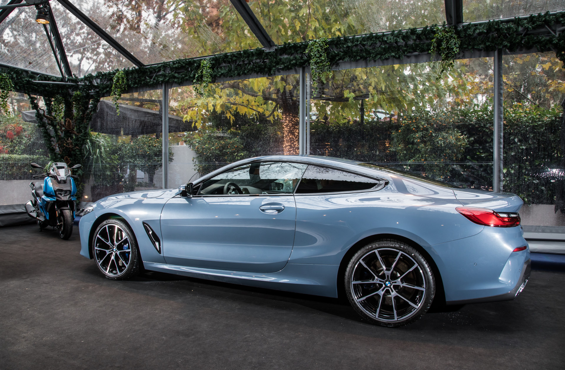 Οι φωτογραφίες αποκαλύπτουν μόνο ένα μέρος της γοητείας. Η νέα BMW σειρά 8 Coupe σου κόβει την ανάσα από κοντά. Αυτό μας συνέβη, στην Δημοσιογραφική Εκδήλωση της νέας BMW Σειράς 8 Coupe που πραγματοποιήθηκε πρόσφατα στην Κηφισιά. Έντονα δυναμικό στυλ με νέα απέριττη σχεδίαση, κομψές, ρέουσες γραμμές, χαμηλωμένο αμάξωμα, μακρύ καπό, έντονες κλίσεις στις κρυστάλλινες επιφάνειες, ισχυρή γραμμή ώμων, χαρακτηριστικές εγκάρσιες διπλές καμπύλες οροφής ("double-bubble”), μακρύ πίσω παρμπρίζ που φαρδαίνει προς το κάτω άκρο, αναλογίες σπορ αυτοκινήτου με εξωτερικό μήκος 4.843 mm, πλάτος 1.902 mm, ύψος 1.341 mm και μεταξόνιο 2.822 mm. Χαρακτηριστικοί είναι οι προβολείς, που είναι πιο λεπτοί από οποιοδήποτε μοντέλο BMW μέχρι σήμερα. Προβολείς LED στάνταρ, Adaptive LED Headlights και BMW Laserlight με Selective Beam και εκτεταμένη εμβέλεια μεγάλης σκάλας έως 600 m διατίθενται προαιρετικά.