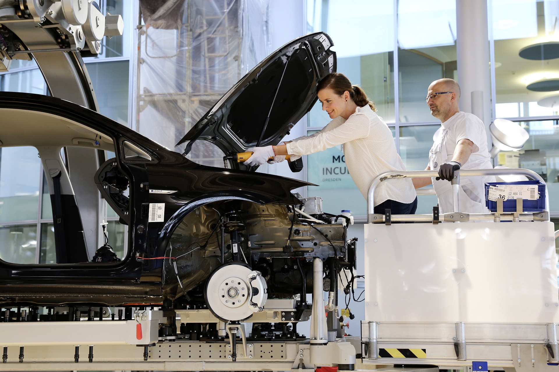 Πάντα πρωτοπόρος η Volkswagen, δίνει τώρα στους πελάτες της τη δυνατότητα όχι μόνο να δουν από κοντά τη διαδικασία κατασκευής αλλά και να συμμετάσχουν στην παραγωγή του e-Golf που επέλεξαν για το επόμενο τους αυτοκίνητο! Υπό την εξειδικευμένη καθοδήγηση των ειδικών της μάρκας, στο πολύ ιδιαίτερο Διάφανο Εργοστάσιο (που έλαβε αυτή την ονομασία καθώς η πλειοψηφία των τοίχων του είναι κατασκευασμένοι από γυαλί) στη Δρέσδη, ο πελάτης έχει τη δυνατότητα να συμμετέχει ενεργά σε τέσσερις φάσεις στη γραμμή παραγωγής, π.χ. κατά την εγκατάσταση του πίνακα οργάνων. Άλλα σημεία όπου ο πελάτης μπορεί να βιώσει την εμπειρία της συναρμολόγησης του οχήματός του, είναι η τοποθέτηση του συστήματος μετάδοσης στο πλαίσιο ή η έδραση της μπροστινής μάσκας καλοριφέρ.