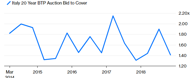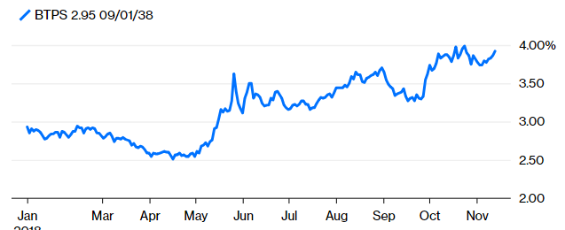 Οι επενδυτές είναι λογικό να είναι νευρικοί όσον αφορά την ανάληψη κινδύνου για τις πιο μακροπρόθεσμες ωριμάνσεις, κι ακόμα περισσότερο πριν από την απάντηση της ιταλικής κυβέρνησης στην απόρριψη από την Ευρωπαϊκή Ένωση της υποβολής προϋπολογισμού για το 2019. Ο λαϊκιστικός συνασπισμός αναμένεται να επιμείνει αποφασιστικά στο στόχο ελλείμματος 2,4% του ΑΕΠ.