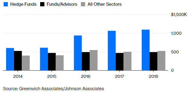 Οι αυξήσεις μισθών στα hedge funds θα περιοριστούν λόγω της αυξημένης μεταβλητότητας των προμηθειών επίδοσης και της γενικής τάσης των funds να χρεώνουν λιγότερο για τις υπηρεσίες τους. Έπειτα είναι και το διόλου ασήμαντο ζήτημα ότι τα funds δεν μπόρεσαν να εκπληρώσουν την υπόσχεσή τους να υπεραποδώσουν έναντι της αγοράς και να ξεπεράσουν τους δείκτες αναφοράς. Για όσους έχουν μετοχές, τα κέρδη από τις αποζημιώσεις θα είναι ακόμα χαμηλότερα.