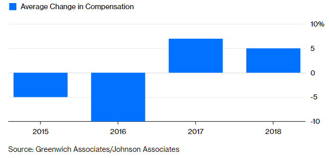 Αυτό είναι το συμπέρασμα της ετήσιας μελέτης για τις Αποζημιώσεις Διαχείρισης Παγίων που δημοσιεύεται από κοινού από την εταιρεία παροχής χρηματοοικονομικών υπηρεσιών Greenwich Associates και τη συμβουλευτική εταιρεία για μισθούς Johnson Associates. Η μελέτη δείχνει ότι η αύξηση του εισοδήματος για τους εργαζόμενους στον κλάδο επιβραδύνεται από το 2017, με τις ασταθείς αγορές το τρίτο τρίμηνο να αποδυναμώνουν τις πιθανές πληρωμές τους για το έτος.