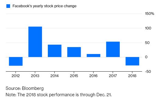 Η μετοχή της Facebook βρίσκεται σε τροχιά να καταγράψει την πρώτη της ετήσια πτώση από την καταστροφική IPO της εταιρείας το 2012