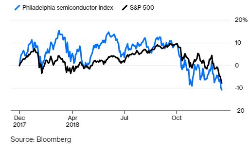 Ένας δείκτης εταιρειών τσιπ υποαπέδωσε έναντι της ευρύτερης χρηματιστηριακής αγοράς φέτος. Ποσοστιαία μεταβολή από τα τέλη του 2017: