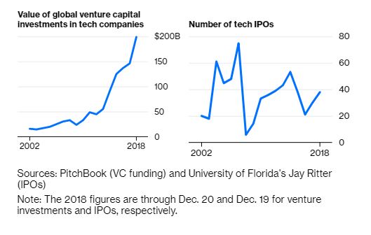 Το 2018 υπήρχε μια υγιής αγορά για επενδύσεις σε startups και αρχικές δημόσιες προσφορές της τεχνολογίας