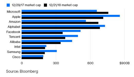 Από τις 10 πιο πολύτιμες εταιρείες τεχνολογίας του κόσμου, μόνο δύο ετοιμάζονται να κλείσουν το έτος με άνοδο της χρηματιστηριακής αξίας