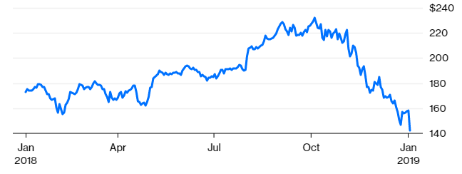 Η μετοχή της Apple έκανε βουτιά 10% την Πέμπτη μετά την υποβάθμιση των προβλέψεων για τις πωλήσεις της. Είχε ήδη υποχωρήσει 28% από την προειδοποίηση μιας στήλης τον Αύγουστο για προβλήματα αποθεματικού στην αλυσίδα εφοδιασμού